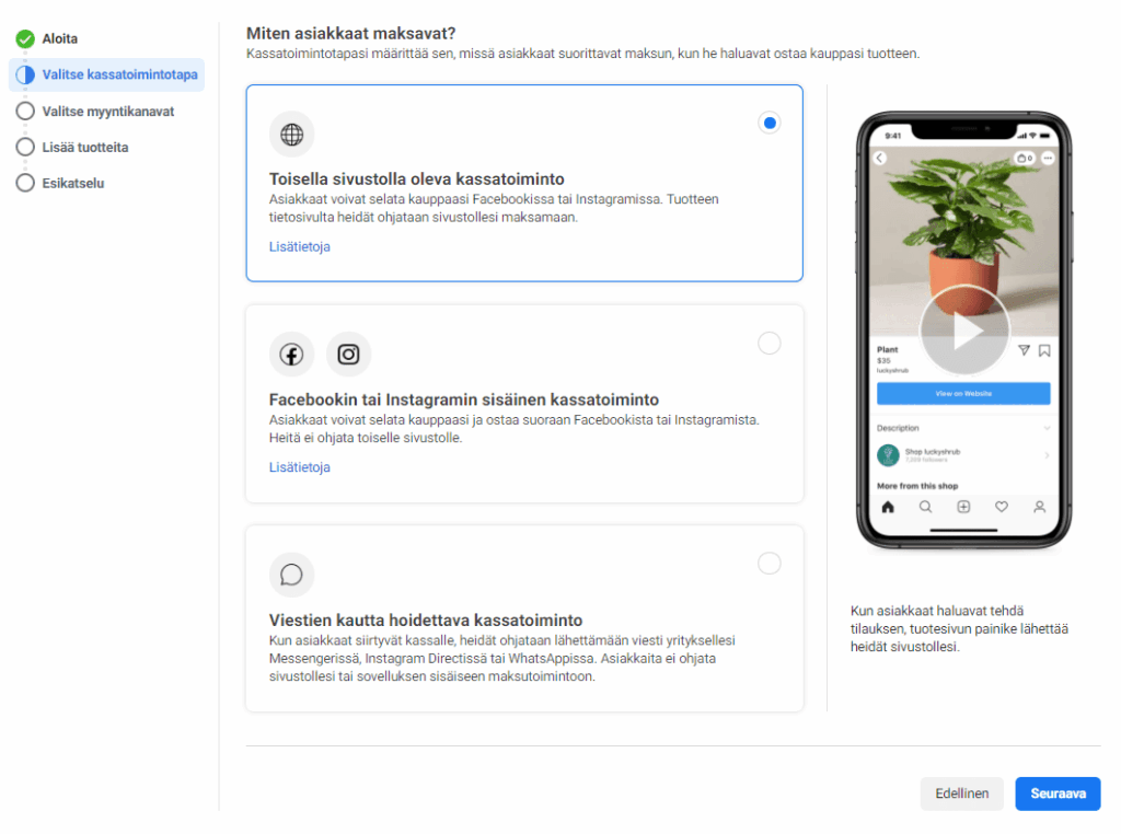 Huom! Luodessasi Facebook-kauppaa, sinun tulee käyttää tietokonetta.